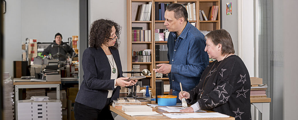 In unserem Showroom in der Nähe der Osramhöfe können Sie Ihre Fantasie spielen lassen. Feine Materialien, Optik und Haptik der Papiere und Leinengewebe, das Buchbinder-Handwerkszeug sind Inspiration für Ihre Ideen, die unsere erfahrenen Handbuchbinder in unvergessliche, handgearbeitete, individuelle Produkte verwandeln.