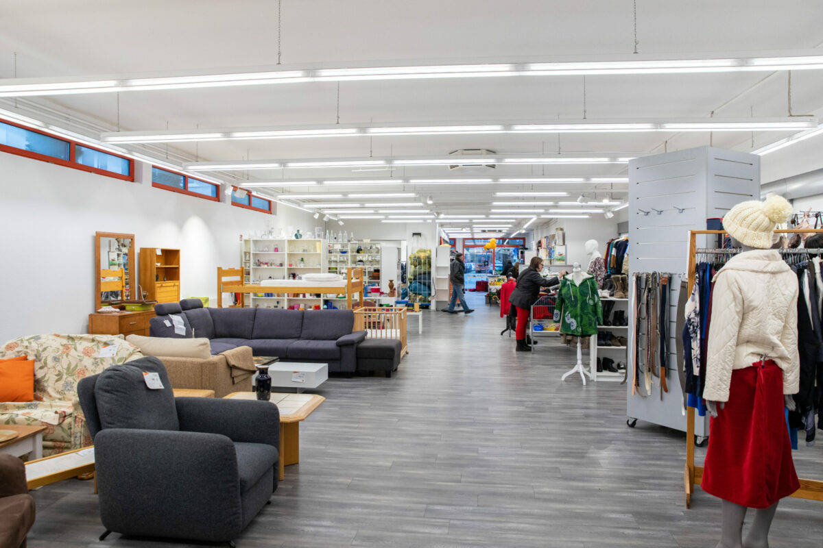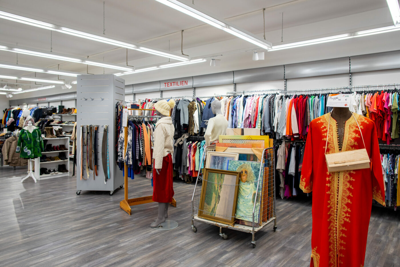 In unserem Sozialkaufhaus finden Sie in gepflegten Verkaufsräumen mit über 400qm Fläche günstig gebrauchte Möbel, Haushaltsgegenstände, Bücher, Geschirr, Kleidung und 1000 andere kleine Dinge. Das Sortiment setzt sich aus Wohnungsauflösungen und aus Einzelspenden zusammen.