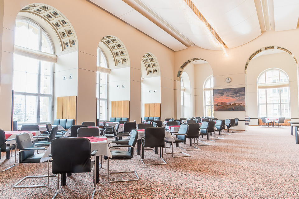Die Gäste der Kantine können aus einem abwechslungsreichen Speiseplan frisch zubereiteter Gerichte wählen. Ob Frühstück, Suppe, knackiger Salat oder hausgemachte Antipasti vom Buffet, deftige Hausmannskost zur Mittagszeit oder Kaffeespezialitäten nach dem Essen – das kulinarische Programm der Kantine im Abgeordnetenhaus hat einiges zu bieten. Die Kantine ist für jedermann öffentlich zugänglich. Den aktuellen Speiseplan finden Sie hier.