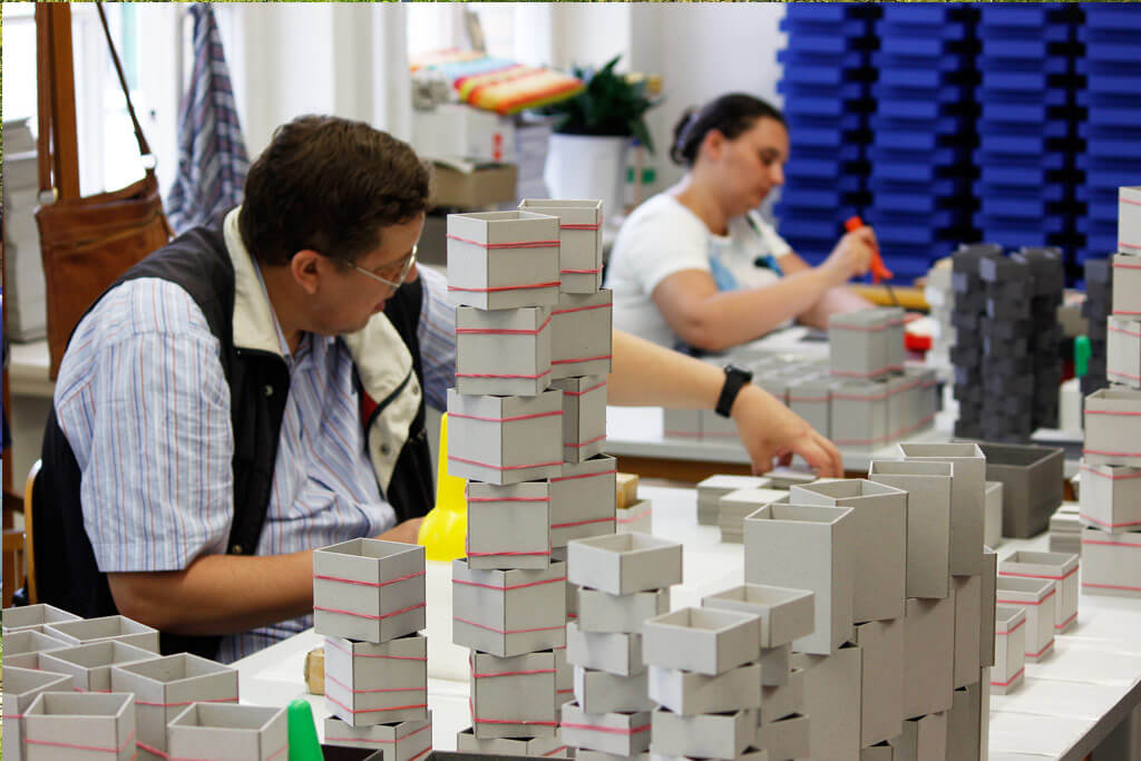 Wir stellen Schachteln, Etuis, Schmuckschatullen, Buchkassetten, Ordnungssysteme, Leporellos, Skizzenbücher, Adressbücher, Mappen und vieles mehr in bester Buchbinderqualität her. Unseren Klassiker – das vielseitige Steckkastensystem DIMension – sowie einen kleinen Überblick unseres Angebots finden Sie in unserem Kreuzberger Ladencafé (Link) oderunter dim-berlin.de